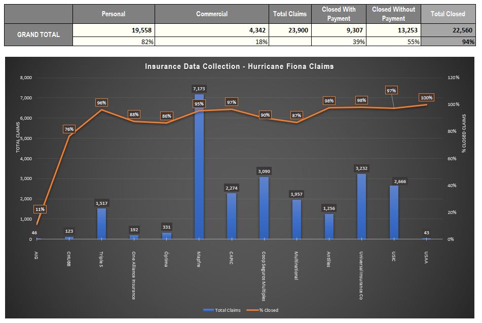 ACTIVIDAD DE RECLAMACIONES POR HURACÁN FIONA